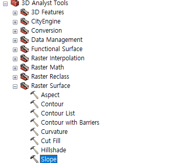 XYZ에 대한 3차원 지형분석이므로 3차원 분석도구 (3D Analyst tools)을 이용하게 된다.