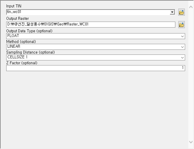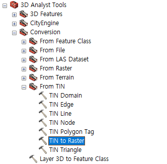 생성한 TIN 파일을 Raster로 변환한다.