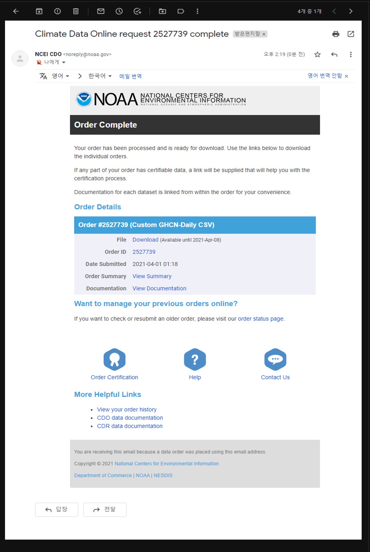 여기까지 NOAA NCDC로부터 원하는 국가의 기상자료를 취득하는 방법에 대해 알아보았다.