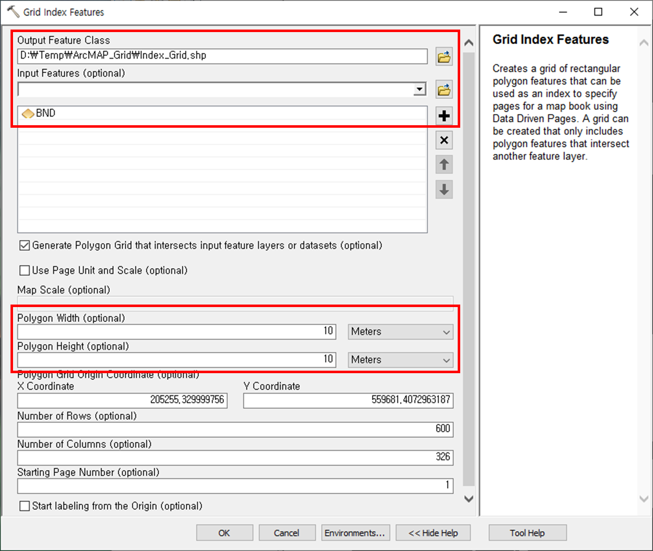 ArcMap의 경우는 원하는 영역(BND)에 대한 Grid 가 생성되었으며