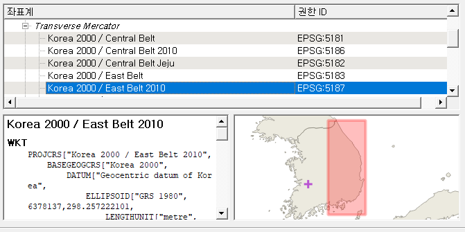 | 2010년 이후 | Korean 2000 Korea Central Belt 2010 |