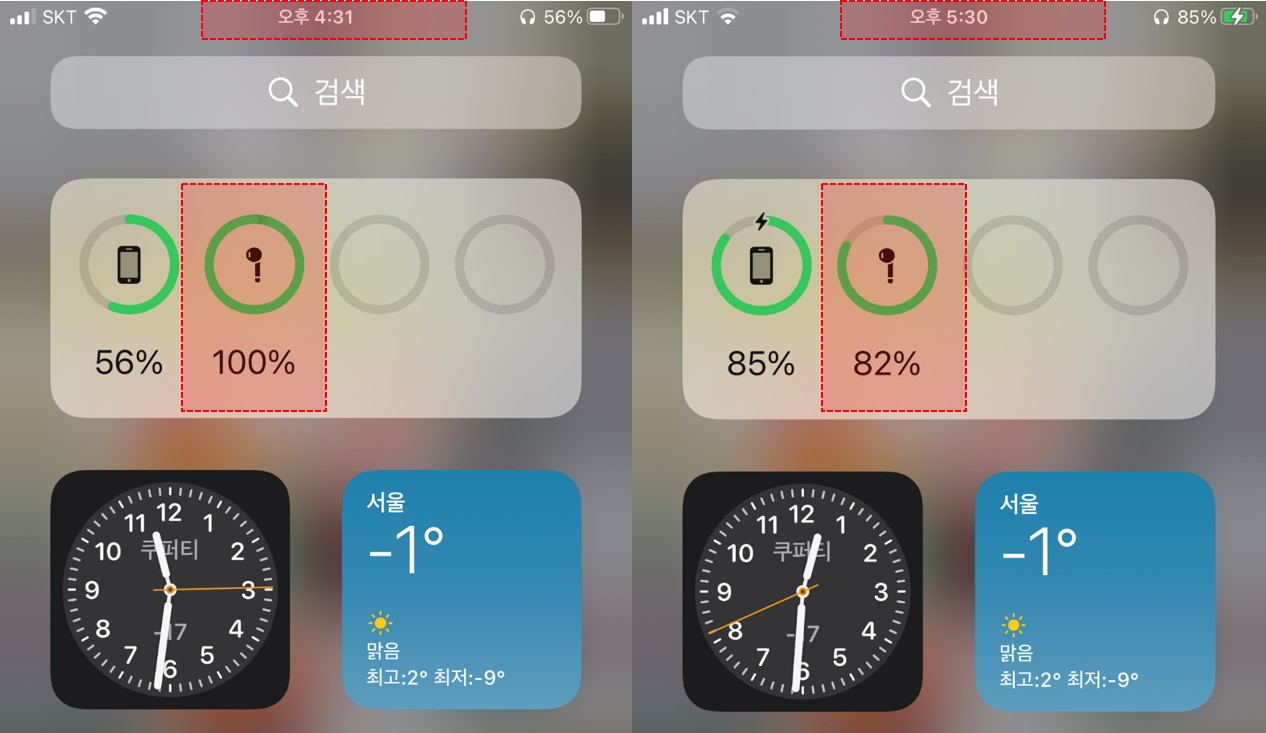 배터리를 교체한 에어팟은 잘 작동이 되는 듯하여 배터리 사용시간을 대략적으로 측정해보았다.