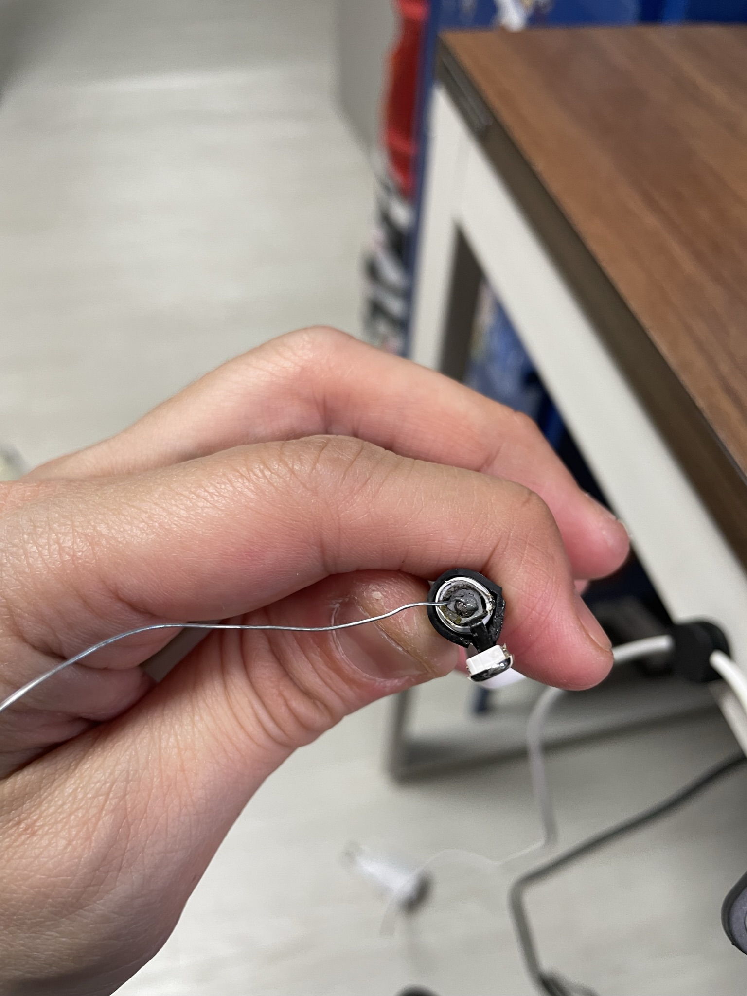 첫번째 철사를 구멍에 넣고 당기기 > 구멍에 넣는건 쉬운데, 철사가 잘 휘어져 금세 빠져서 실패