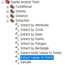 2) 스페이셜 애널리스트 툴즈의 익스트랙트 밸류즈 투 포인트스를 더블클릭한다.